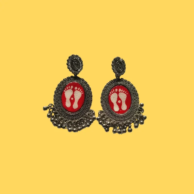 Celebrate the rich heritage of Uttarakhand with this beautifully handcrafted Aipan Jhumka Combo Set, inspired by traditional Kumaoni Aipan art.
