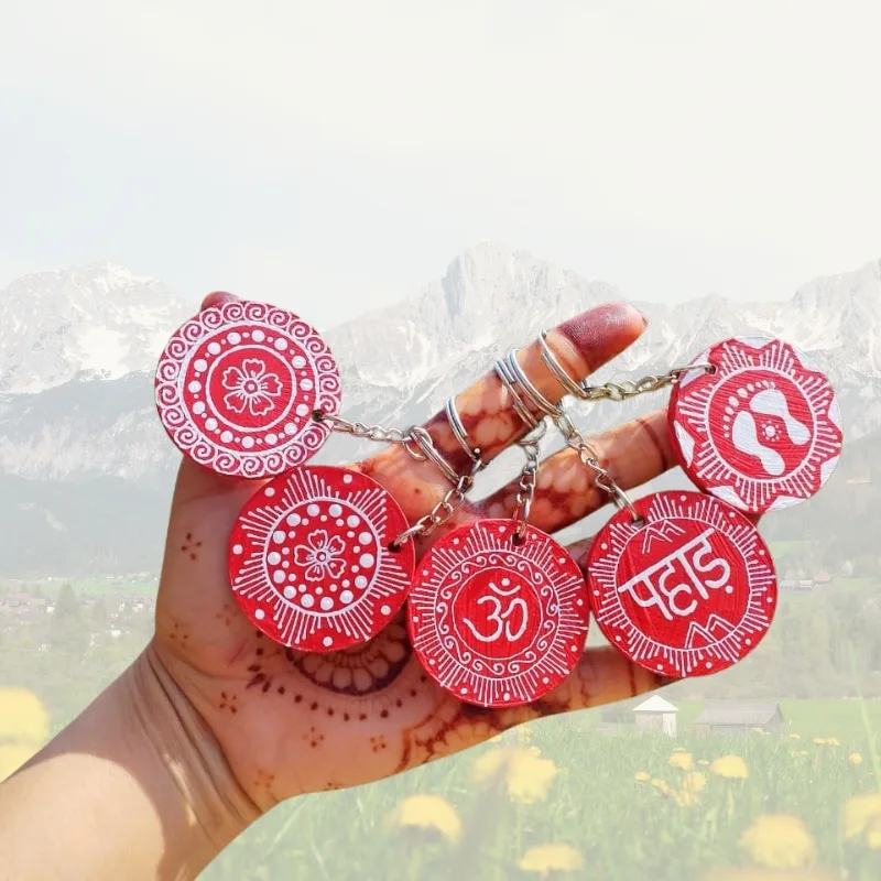 Bring a touch of tradition to your everyday life with our Aipan Keychain Set (Pack of 5), beautifully handcrafted in Uttarakhand.