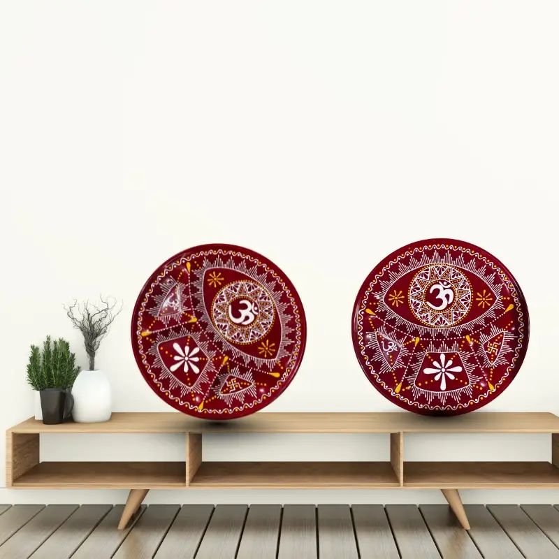 Bring traditional Kumaoni spirituality into your pooja with this 10-inch Steel Aipan Thali, beautifully inspired by authentic Aipan art.