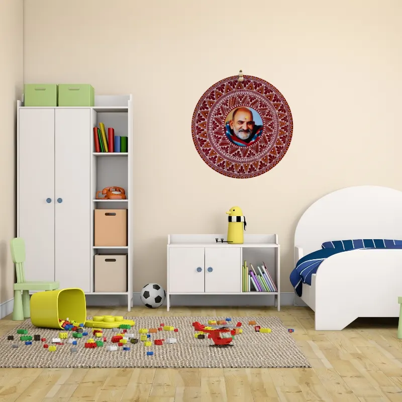 Bring divine positivity and spiritual grace into your space with this 12-inch MDF Wall Hanging of Baba Neem Karoli Maharaj. Crafted with devotion and artistic precision, this circular wall décor features a beautifully detailed traditional Aipan-inspired mandala design surrounding the serene portrait of Baba Neem Karoli Maharaj.