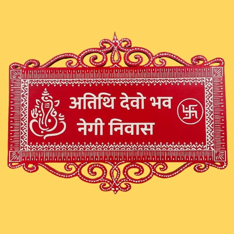 - Traditional “Atithi Devo Bhav” design — customizable to your family name